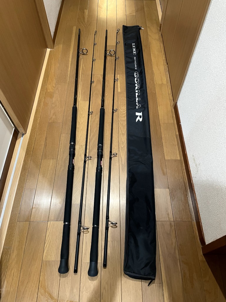 肝心のロッドは、岩を回避するために長めのロッド、GTロッド8ft以上のものがよいと聞いていた。パワーはもちろん、高負荷時の粘り強さ、仕舞い寸法(飛行機の荷物制限があるため)を考慮し、「ラグゼ ショアゴリラR/がまかつ」の「100XH」と「100XXH」の2機種を持参することに。