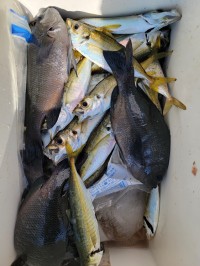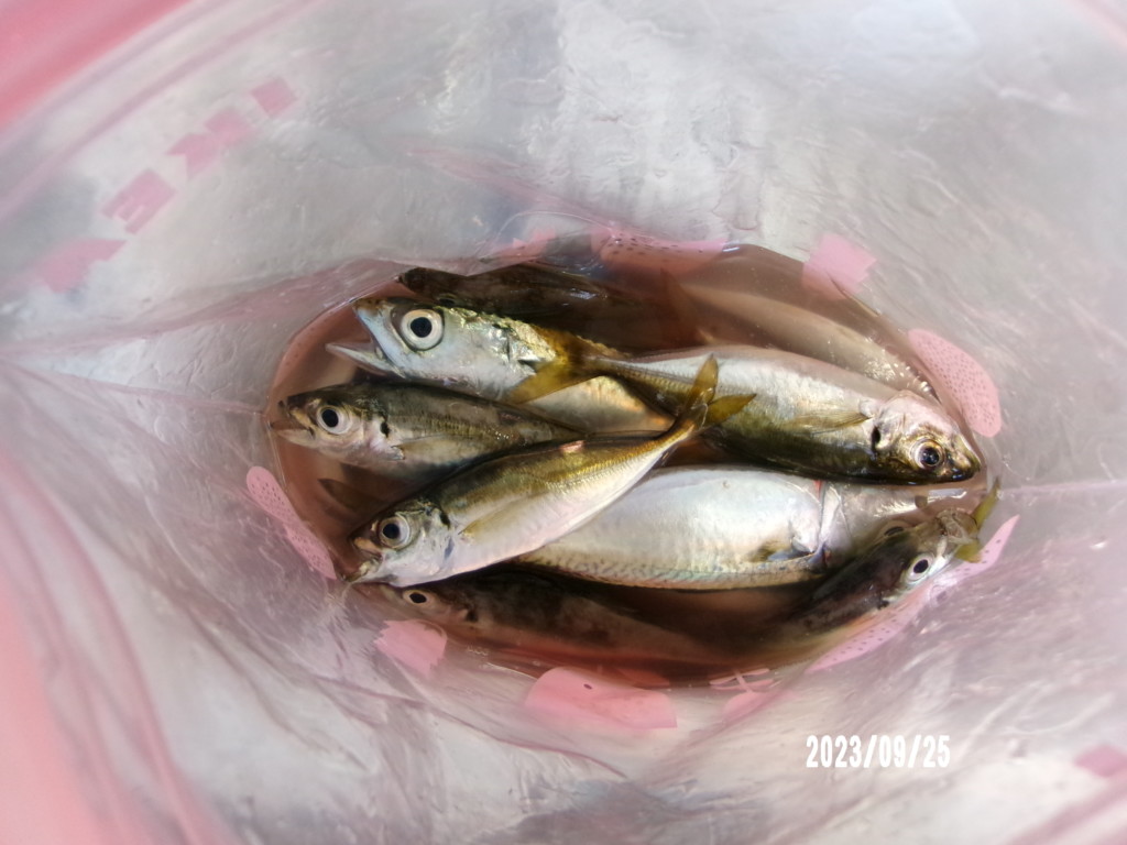 半夜の時間帯に20cm台のアジがポロポロ釣れているようです。ですがメインは豆~小アジサイズ。サビキ釣りやカゴ釣りで狙っています。
