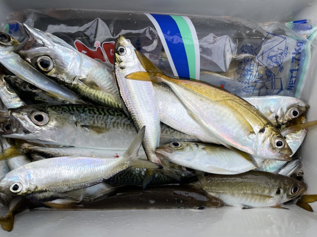 アジ16~20cm5尾、小アジ11~15cm300尾、豆アジ7~10cm80尾。