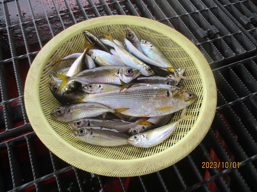 アジ23cm頭に10尾、小アジ11cm前後100尾。