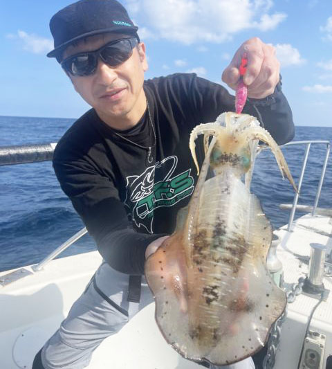船エギングのアオリイカはいぜん好調。サイズも良型がまじり始めました。