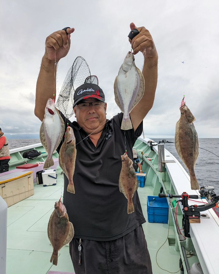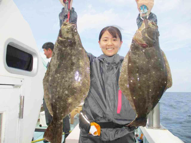 今週は、ノマセ釣りでヒラメの食いが上昇中。大判まじえて船中2ケタ釣果も出ています。