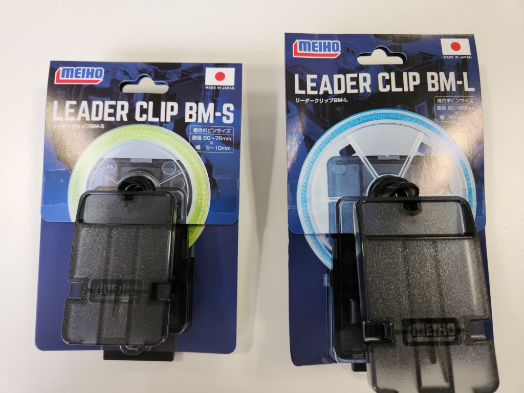 まずは「リーダークリップBM-S/BM-L」。ショックリーダーをスプールごとクリップで挟み、程よいテンションが掛かることで、ラインの引き抜きやすさ、独りでに転がっていってしまわないようにするアイテム。