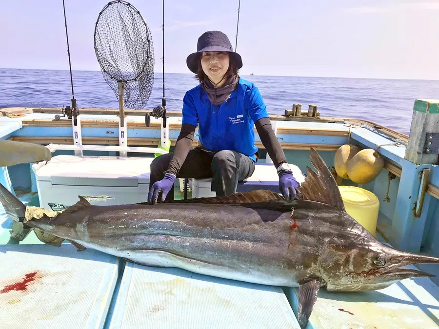 実は和田さん、華奢な体型ながらも凄腕アングラー。先日、須崎沖でスロージギング中にヒットしたシロカワカジキを、わずか30分で釣り上げた。しかも50kg超えをPE2号でキャッチ。高知新聞にも大きく掲載されたと言うから驚いた。