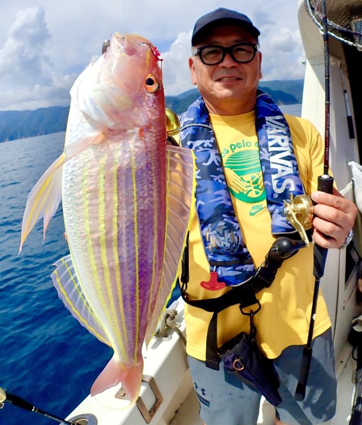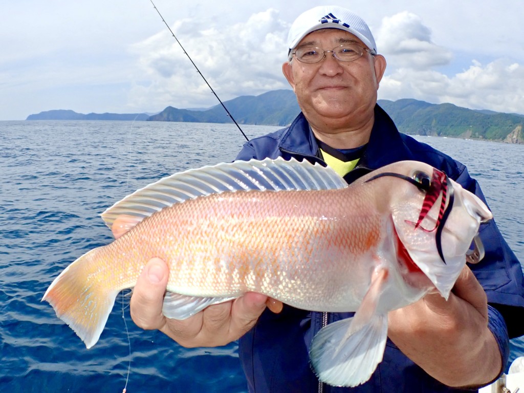 須崎沖はマダイに加え、高級魚のシロアマダイの宝庫だ。釣友の黒笹慈幾氏が、水深70mラインで70cmを超える立派なシロアマダイを釣り上げて話題になった。