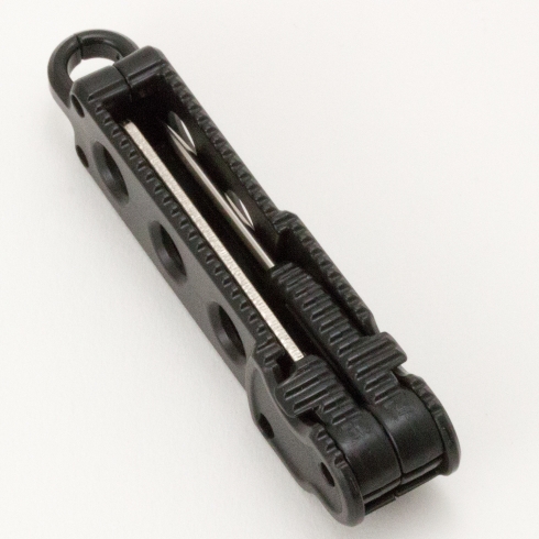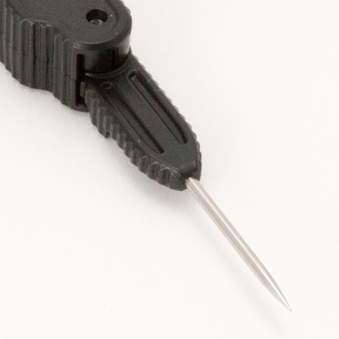 鈍ったジグヘッドのフックを研ぐためのシャープナーに、絡まった結び目をほぐすためのピックが搭載し、重量18gと超軽量ながらカナリ便利なアイテム。