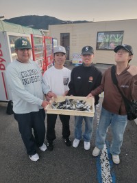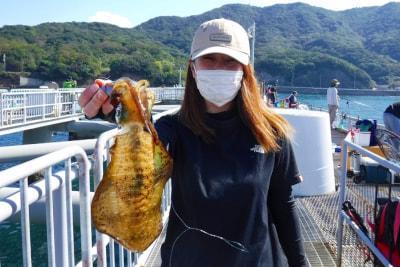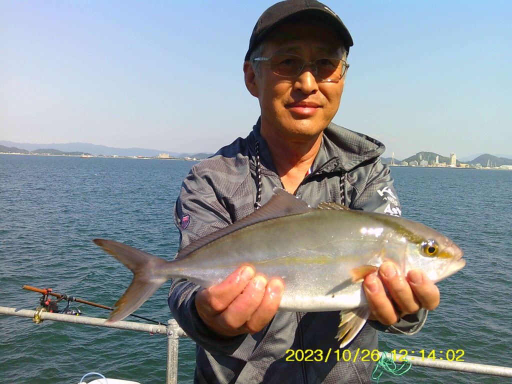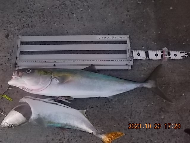 メジロ71cm、ハマチ46cm頭に2尾、イシガキダイ24cm、グレ29.3cm頭に11尾、アイゴ30cm頭に10尾、アオリイカ560g頭に9ハイ、カワハギ4尾、アジなど。