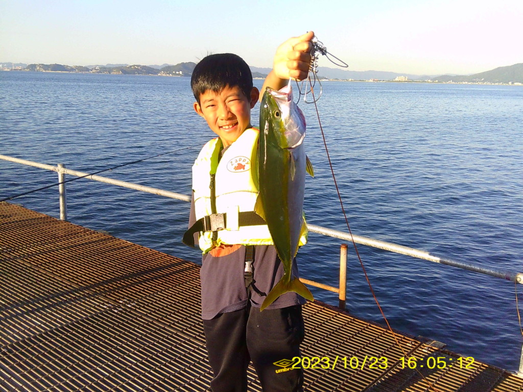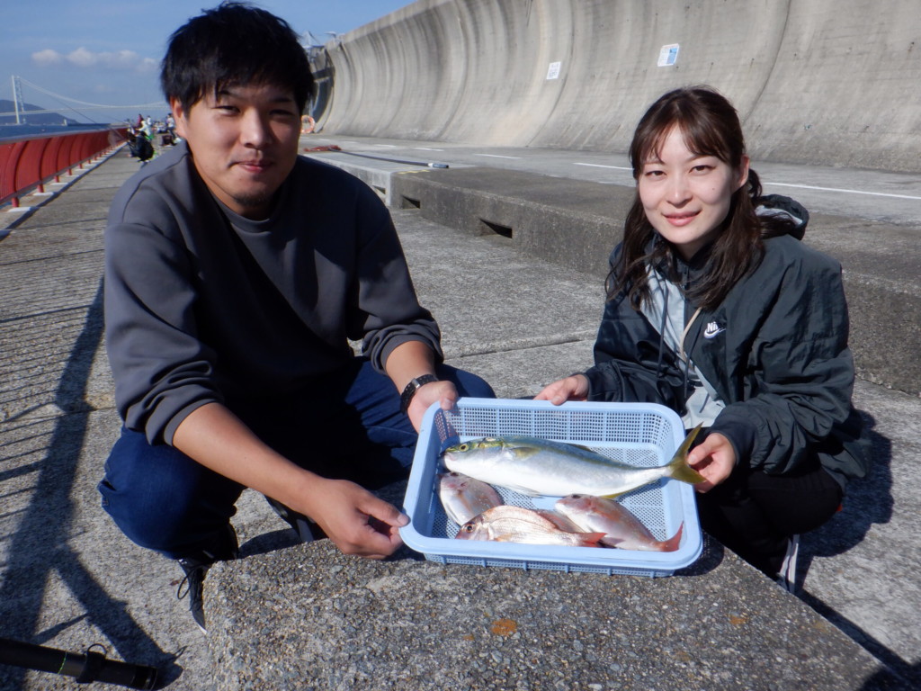 マダイ45cm、ハマチ4尾、ツバス2尾、ガシラ2尾、豆アジ150尾、サヨリ、アイゴなど。