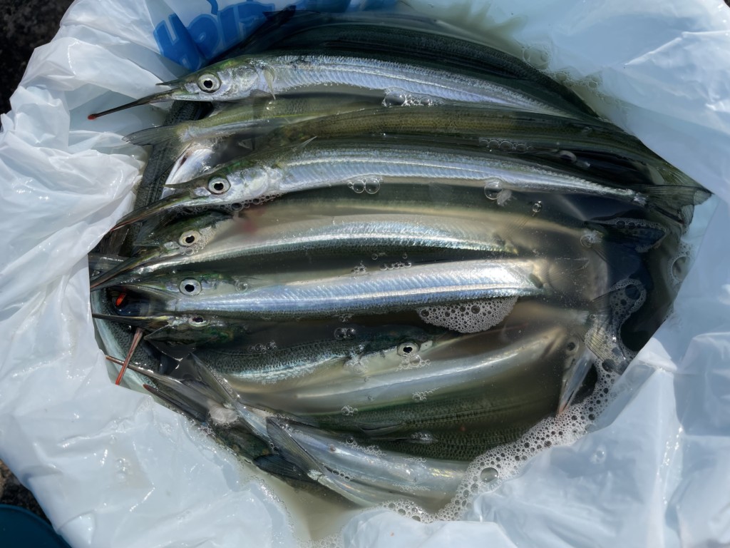 ハマチ2尾、ツバス4尾、カワハギ5尾、メバル5尾、サヨリ、アイゴなど。