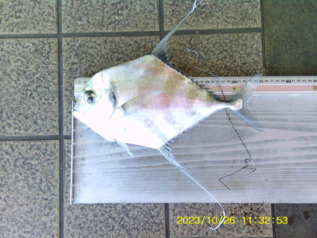 アジ16~22cm5尾、小アジ11~15cm260尾、豆アジ7~10cm60尾、サバ16~25cm180尾、サッパ12~15cm350尾、カタクチイワシ8~10cm560尾、コノシロ22~26cm13尾、サヨリ15~30cm500尾、チヌ49.5cmと23cm、スズキ74cm、ハネ43cmと41cm、セイゴ32cmと22cm、カワハギ18cm2尾、コショウダイ18cm。