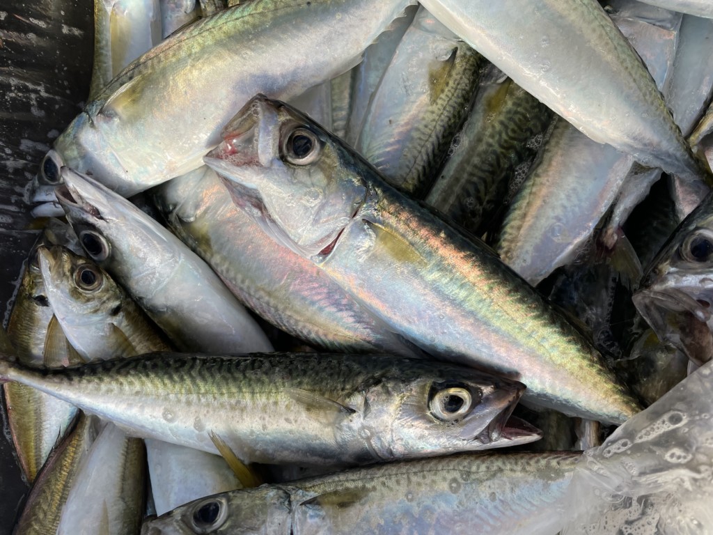 アジ16~22cm25尾、小アジ11~15cm550尾、豆アジ7~10cm80尾、サバ16~25cm150尾、サッパ12~15cm110尾、カタクチイワシ8~10cm1500尾、コノシロ15~28cm60尾、ヒイラギ5~10cm10尾、サヨリ18~22cm90尾、キビレ23cm、カワハギ19cm、メジロ64cmと62cm。