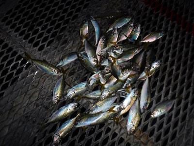アジ13~16cm70尾、サバ18~23cm80尾、カタクチイワシ7~12cm150尾、サッパ11~15cm150尾、コノシロ16~25cm50尾、サヨリ17~24cm300尾、キビレ41~44cm3尾、チヌ30~50cm4尾。