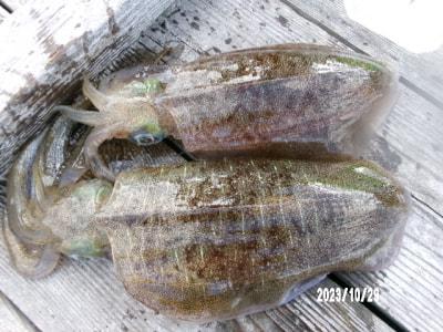 ハマチ45cm、ヒラスズキ38cm頭に16尾、チヌ28cm、グレ28cm頭に14尾、カワハギ6尾、アオリイカ400g頭に7ハイ、ウスバハギ53cm、アイゴ35cm頭に38尾、コウイカ400g頭に3バイ、小アジ多数。