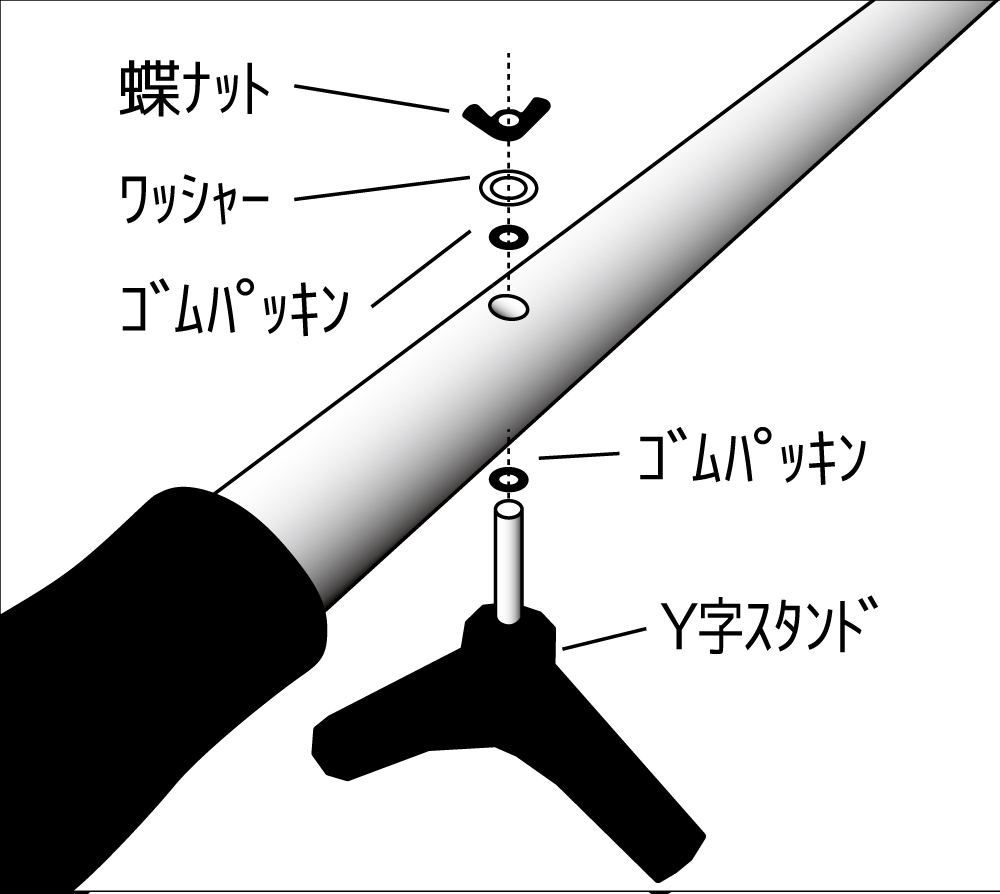 そのため、地面に置いたまま使うことが多いのですが、その時に便利なのが標準装備されている“Y字スタンド”!