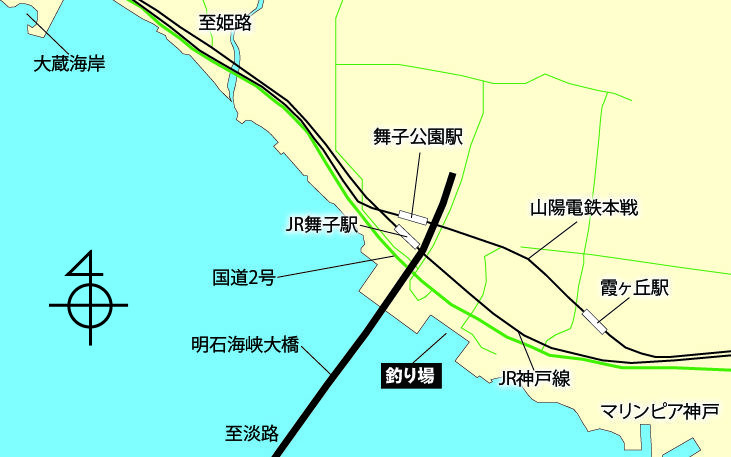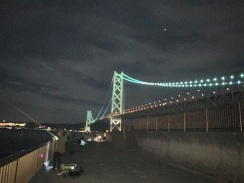 明石海峡大橋の東、神戸市側にある「白砂青松の舞子の浜」を復元した公園もある釣り場です。ここは潮通しがよく、大型魚、小型魚を問わずに、魚の寄りが抜群。