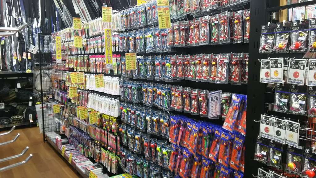 ▲店長が「特に力を入れている」と言うイカメタルなどのイカ用品コーナー