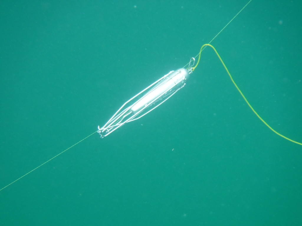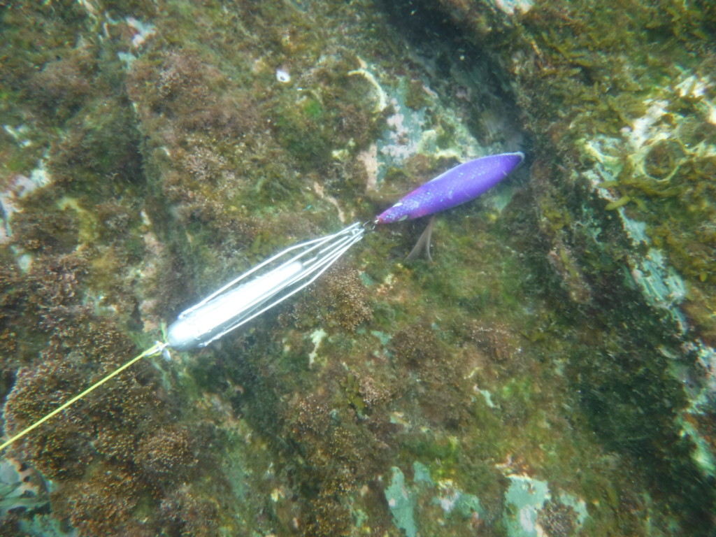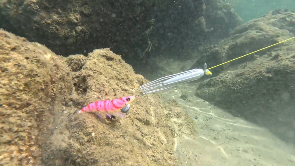ルアーに到達したら、ラインを張った状態で何度かレスキューロボをコツコツと当てます。この時、レスキューロボが動かなくなったらレスキューロボが根掛かったルアーを捉えた合図!